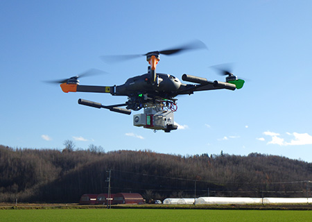 GNSS・IMU機能により、操縦器を手放しても同じ位置に留まったり、自立的に安定して飛行します。経緯度・高度設定システムにより、指定した定点撮影はもちろん、自動コース飛行も可能です。